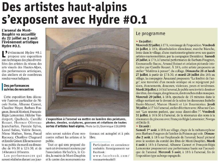 - Exposition HYDRE à l’arsenal de Mont-Dauphin du 22 juillet au 5 août 2020.
